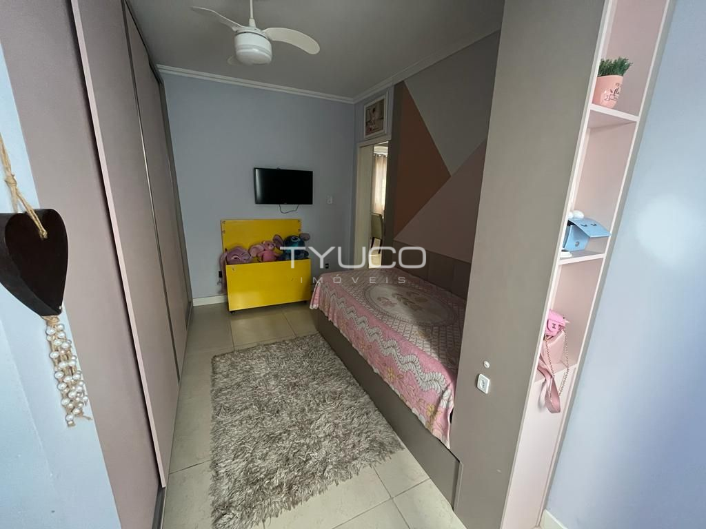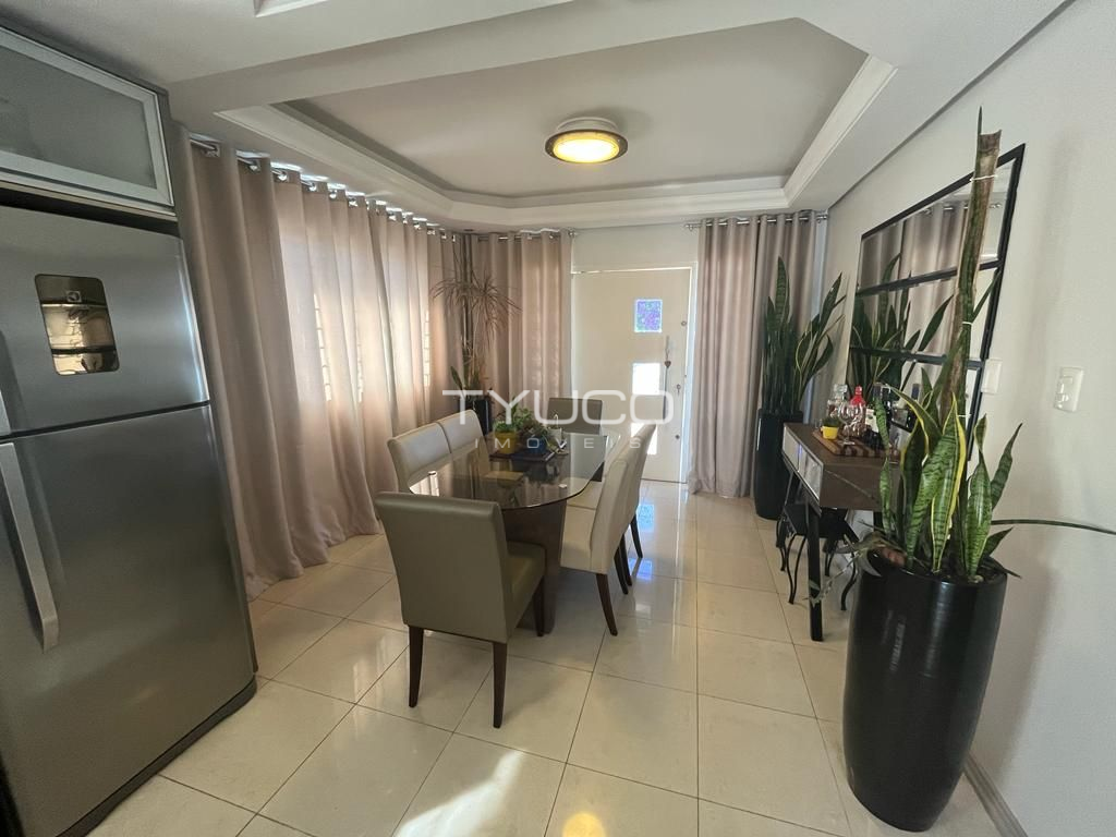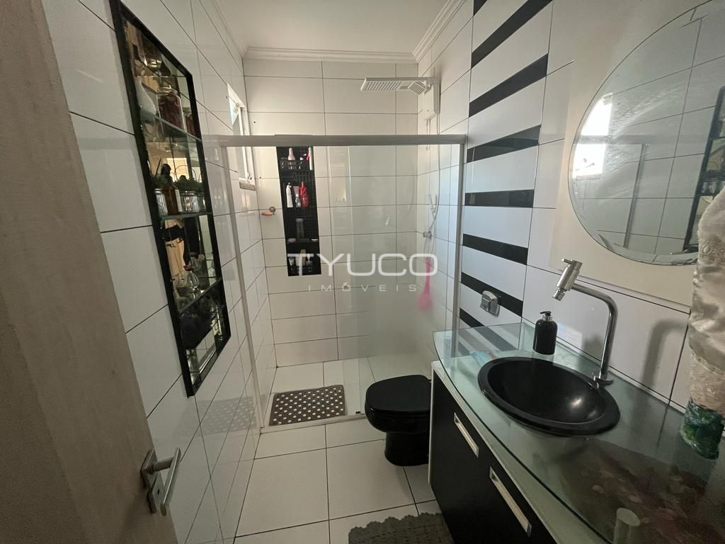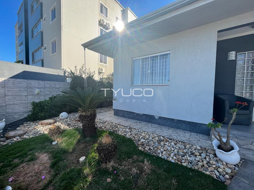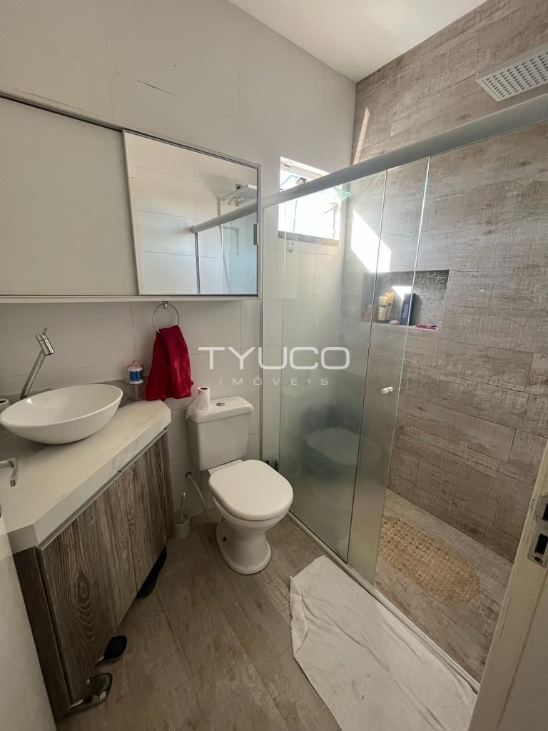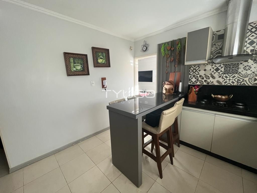 Dispõe de três amplos dormitórios, sendo um suíte, sala e cozinha integradas, banheiro social, vaga de garagem e ampla área com churrasqueira, ideal para reunir a galera e fazer aquela festa!